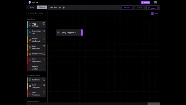 SearChat, chatbots visual builder, empowers you to create powerful and custom AI chatbots in minutes. Simply drag and drop building blocks to design your chatbot's flow, then test it in real-time to ensure flawless performance.